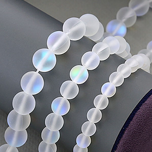 [21-708][25-045] 원석 라운드 무광월광석 6-10mm 화이트오로라 (3줄)