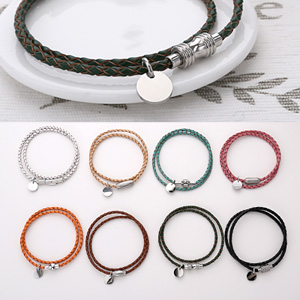 (디자인-g2387) 써지컬스틸 두줄가죽팔찌